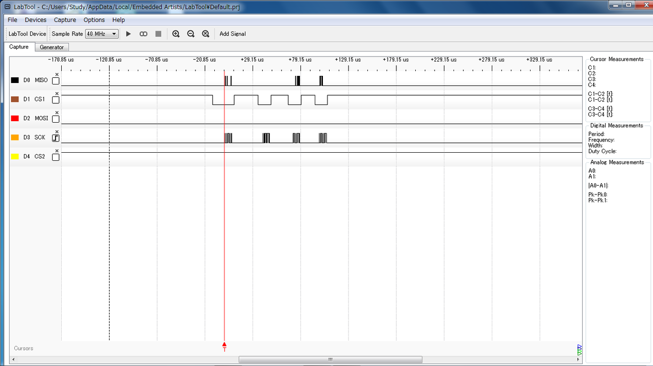 前回の記事にてMOSI,MISO,SCK,CS各信号をロジックアナライザーにて確認した。
